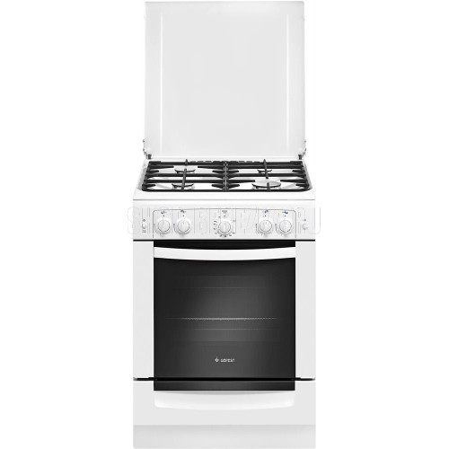 Габаритные размеры: 60х60х85 см. Цвет: белый. Объем духовки 52л. Количество зон приготовления: 4. Варочная поверхность: эмалированная. Фасад: эмалированный. Крышка металлическая. Выдвижной ящик для посуды и принадлежностей. Съемные проволочные направляющие духовки. Газ-контроль духовки. Терморегулятор (термостат). Гриль. Ножки регулировочные. Электророзжиг горелок и духовки, кнопка розжига на панели. Подсветка духовки одинарная.