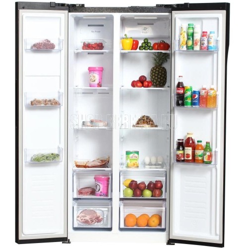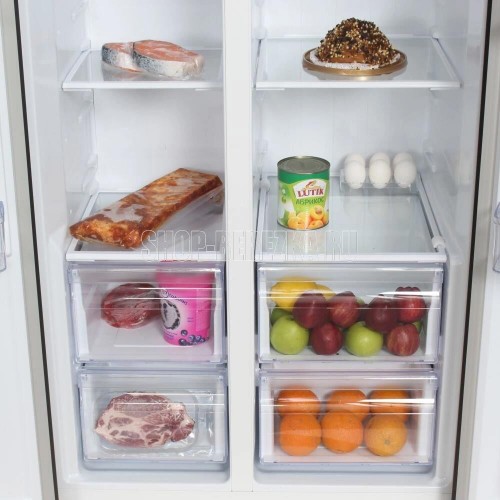 Холодильник Side-by-Side. Полезный объём: 436 л. Полезный объем холодильной камеры: 271л. Полезный объем морозильной камеры: 165л. Система размораживания Total Nofrost. Тип управления: сенсорное управление (внешний дисплей). Уровень шума 43dB(A). Класс энергопотребления: А+. Цвет: нержавеющая сталь. Габаритные размеры без упаковки в*ш*г, см: 178.0*91.1*63.6. Вес нетто/брутто : 91/101. Гарантия 2 года
