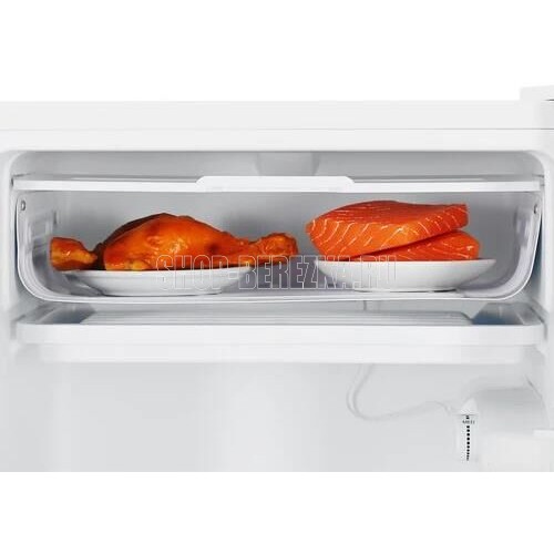 Компактный холодильник с отделением для быстрого охлаждения напитков • цвет Белый • механическое управление • ящик для овощей и фруктов • освещение • класс энергоэффективности А+ • габариты 86x47,2x45см • объем 94/93л
