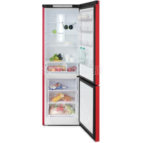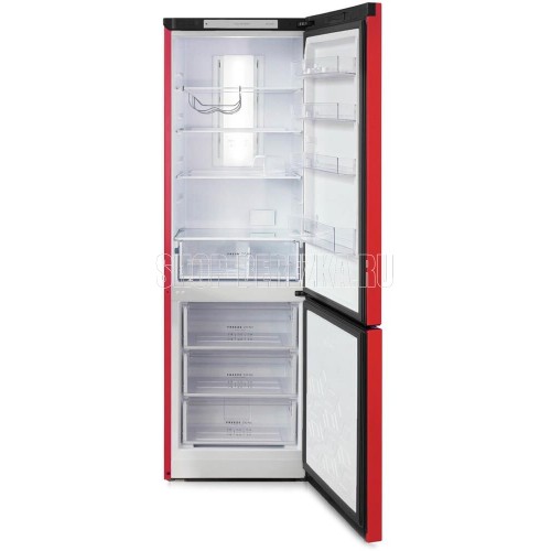 Двухкамерный холодильник с нижней морозильной камерой с системой Full No Frost с дисплеем на двери • цвет Красный • LED дисплей на двери • система охлаждения Multi Air Flow • регулировка влажности Humidity control • единая зона для овощей и фруктов Fresh Zone с разделителем • полка для бутылок, масленка • LED освещение • электронное управление • габариты 190х60х62,5см • объем 340/240/100л