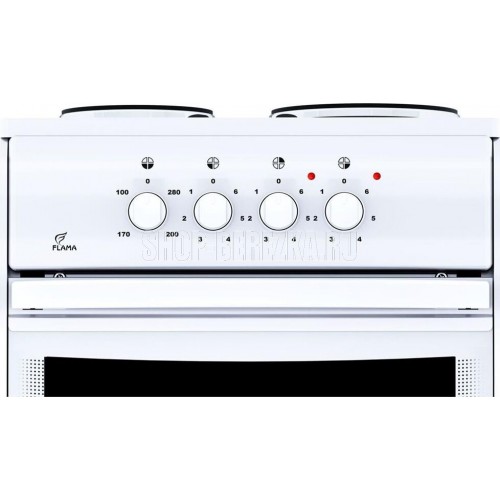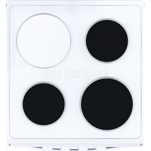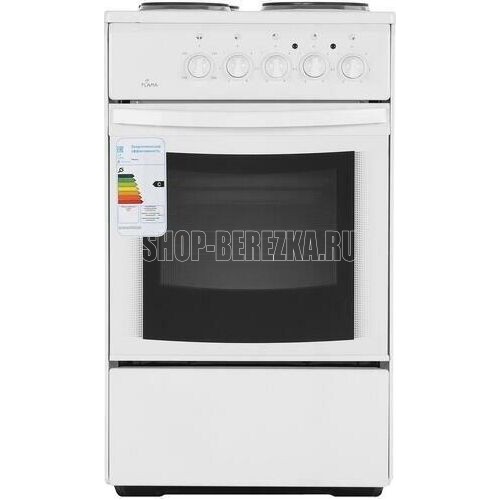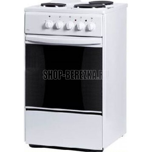 (ВхШхГ)85х50х60см.Плита электрическая.Цвет белый.Вес 32кг.Объем духовки 50л.Мощность духовки: ТЭН верхний 0,8кВт, ТЭН нижний 1,2кВт.Хозяйственный отсек.