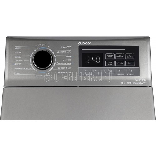 Стиральная машина с вертикальной загрузкой и инверторным мотором • цвет Металлик • загрузка 8 кг • 1300 об/мин • обработка паром • габариты 87,5x40х60 см • 16 программ • LED дисплей