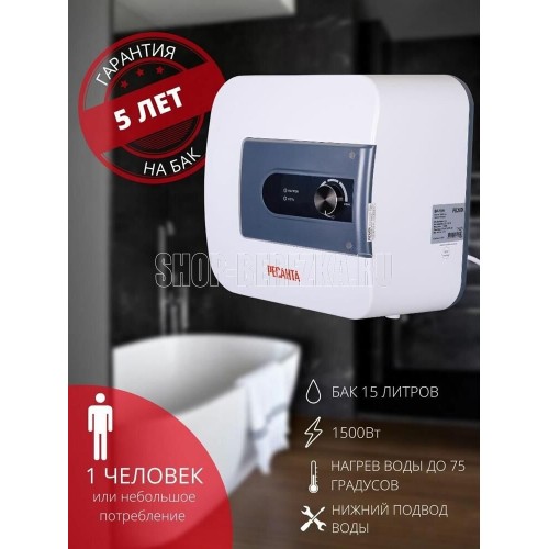 Электропитание 220-230В, 50 Гц. Максимальная температура нагрева До 75 °С. Подвод воды снизу. Мощность 1500 Вт. Тип крепления над раковиной. Объем бака 15 л. Управление механическое. Материал бака эмалированная сталь. Дисплей нет. УЗО нет. Страна производства Китай. Тип накопительный. Время нагрева* (до максимальной мощности в идеальных условиях) 31 мин. Размеры,мм 355х320х355. Вес нетто, кг 7,2. Вес, кг 8.72 кг. Габариты упаковки 0.39х 0.39х 0.39 м.