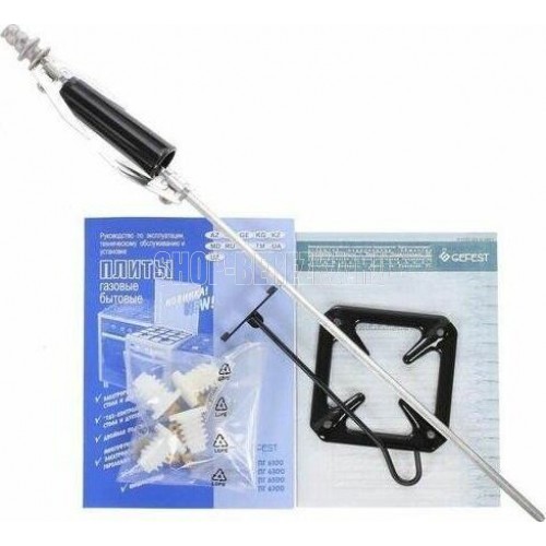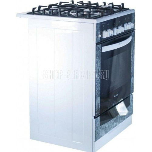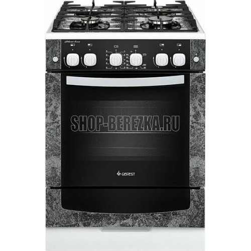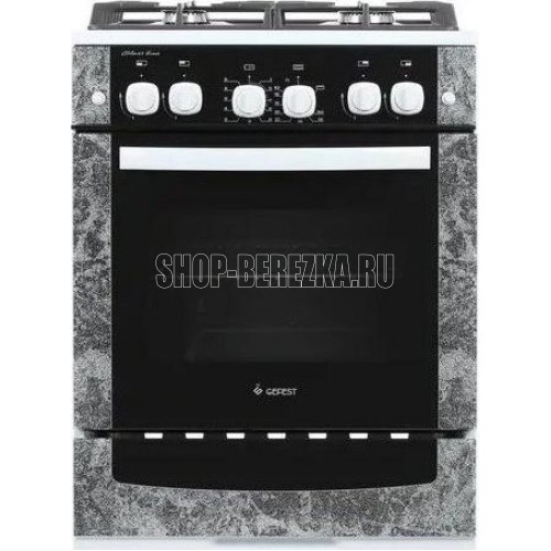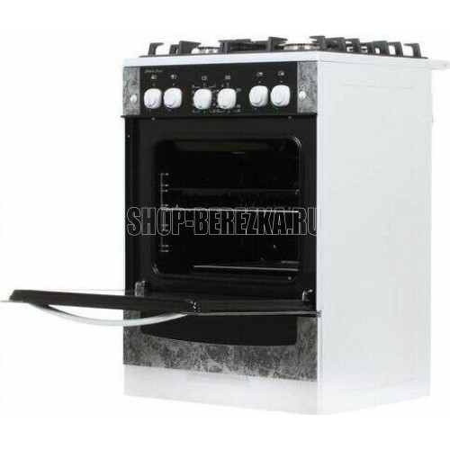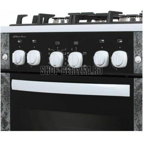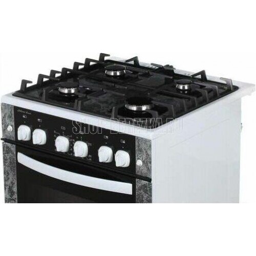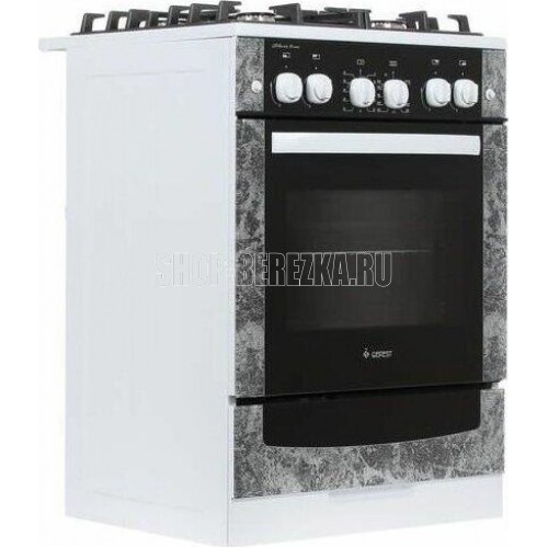 Габариты (ШхГхВ) 60x60x85 см. 4 газ. горелки. Электророзжиг горелок, кнопка розжига на панели. Полезный объём духовки: 52 л. Вертел с электроприводом. Газ-контроль духовки. Гриль-горелка газовая. Подсветка духовки одинарная. Проволочные направляющие. Таймер механический. Терморегулятор (термостат). Электророзжиг духовки, кнопка розжига на панели. Выдвижной ящик. Ножки регулировочные. Исполнение без крышки. Цвет: с рисунком "мрамор". Варочная поверхность: стеклянная.