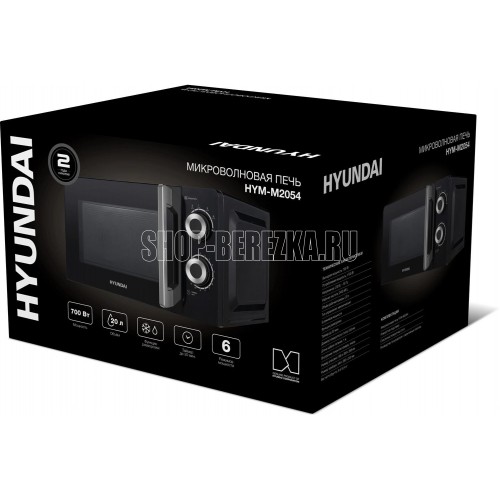 одель; HYM-M2054; Объем; 20 л; Мощностьмикроволн; 700 Вт; Типуправления; механическое; Открываниедверцы; ручка; Диаметр поворотногостола; 245 мм; Размеры, вес; Длина кабеля питания; 1.01 м; Цвет; черный /серебристый; Размеры (ШхВхГ); 44.6 х 24.3 х 36.0 см; Вес товара; 9.4 кг