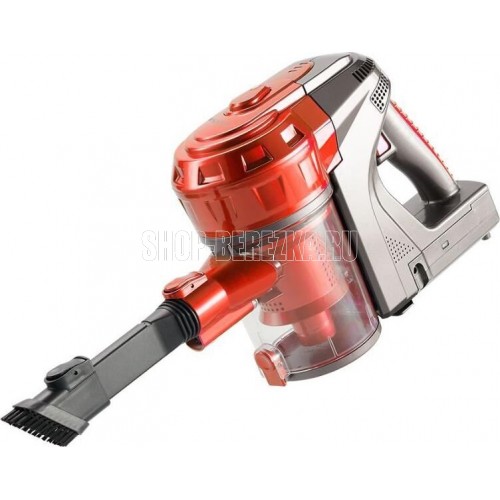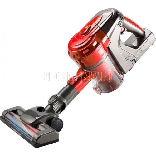 Беспроводной пылесос: Мощность всасывания: 250 Вт Объем пылесборника: 1,0 л 5-ти ступенчатая система фильтрации 2 режима скорости Уровень шума: 72дБ Тип пылесборника: циклонный фильтр Металлическая телескопическая трубка Время работы: 30-35 минут. Время зарядки: 4-5 часов Аккумулятор: 14.8--22.2V Li-ion Batteries 2200mAh Сила всасывания: 7 кПа В комплекте: сетевой адаптер, насадка-щёточка, настенное крепление