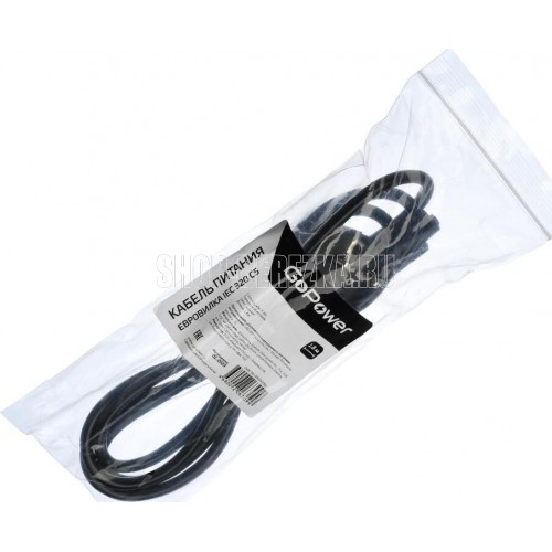 Силовой кабель, евровилка CEE 7/7-IEC 320 C5, сечение 0,75мм, длина кабеля 1,8 метра, ПВХ, цвет черный