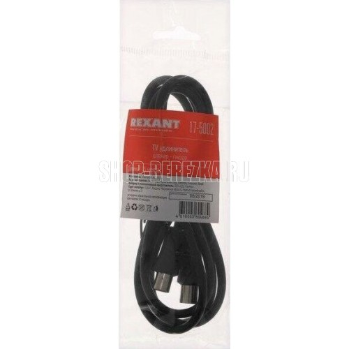 REXANT (17-5002) ШНУР ТВ ГНЕЗДО - ТВ ШТЕКЕР, ДЛИНА 1,5 МЕТРА, ЧЕРНЫЙ