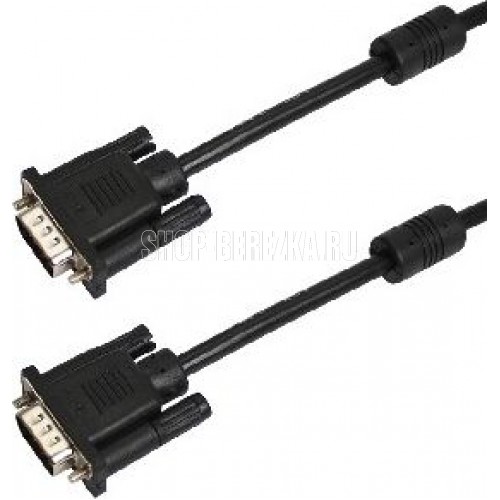 Предназначен для передачи аналогового видеосигнала. Используется для совместной работы устройств, имеющих разъемы VGA: компьютер, ноутбук, монитор, плазменный и ЖК телевизор, AV ресивер, проектор и т. п. С обеих сторон располагаются штекеры разъема VGA (англ. Video Graphics Array). Шнур имеет ферритовые фильтры, служащие в качестве дополнительной внешней защиты от эл-х волн, что гарантирует воспроизведение оригинального видеосигнала. Штекеры выполнены из качественного, легкого и прочного пластика. 1.8 метра.