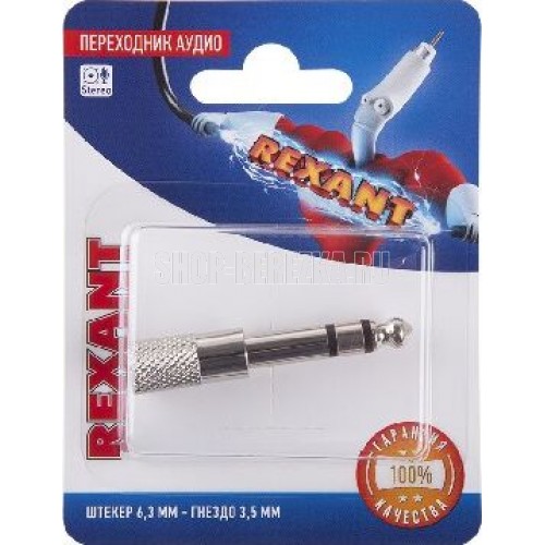 REXANT (06-0168-A) ПЕРЕХОДНИК АУДИО (ШТЕКЕР 6,3 ММ СТЕРЕО - ГНЕЗДО 3,5ММ СТЕРЕО), МЕТАЛЛ, (1ШТ.)