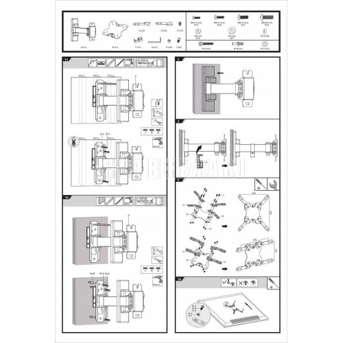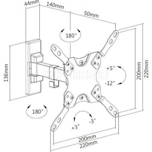 Диагональ экрана: 13"-43". * Подходит для изогнутых телевизоров. VESA: 75x75, 100x100, 200x100, 200x200. Максимальная нагрузка: 20 кг. Расстояние от стены: 60-190 мм. Угол поворота: +90°~-90°. Угол наклона: +5°~-12°. Горизонт экрана: +3°~-3°. Материал: холоднокатаная сталь, пластик. Протестировано весом в 2 раза больше максимально допустимого. Плавно и легко наклоняется и поворачивается. Конструкция свободного наклона. Встроенная регулировка уровня и индикатор поворота. Конструкция панели с VESA съёмная для лёгкой установки. Направляющая кабеля.