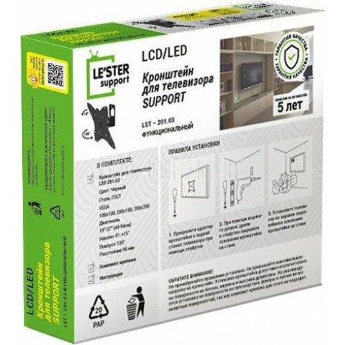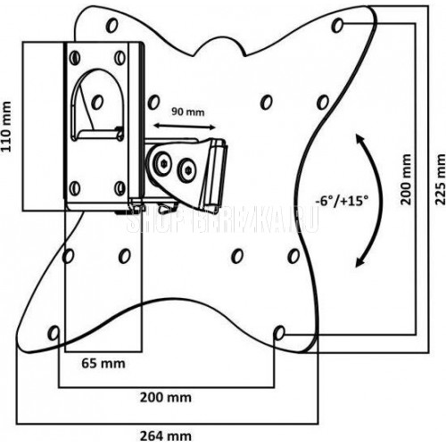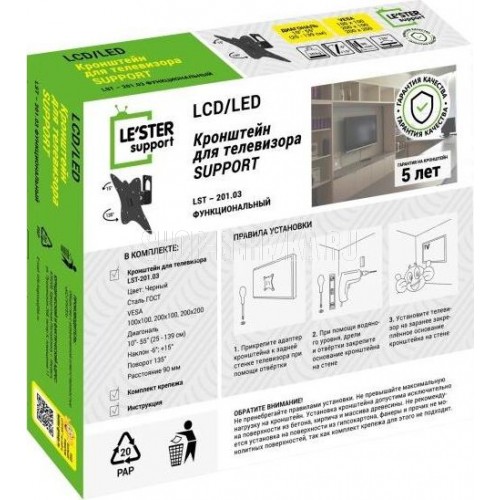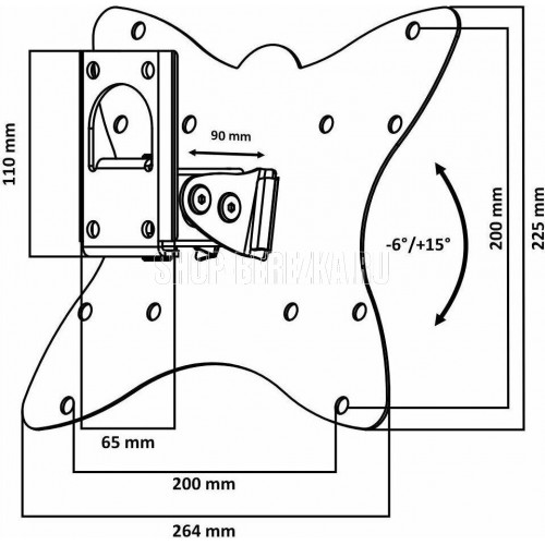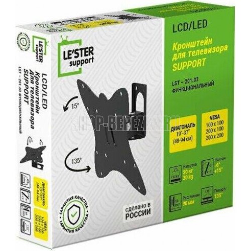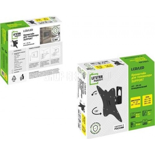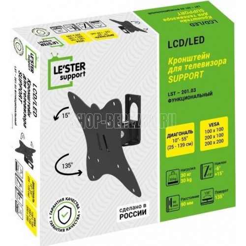 Наклонный-поворотный (Функц) Диагональ: 10"-55" (25-139см) Расстояние от стены: 90 мм Угол наклона: -6°/+18° Угол поворота: 135° Нагрузка: 25 кг Толщина металла адаптера 1,5 мм, основания 3 мм. Регулировка угла наклона и поворота без использования инструмента. Vesa 200*200.