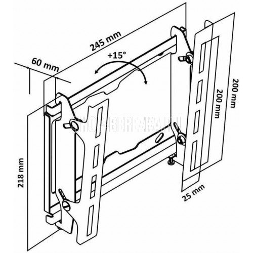 Наклонный с увеличенным расстоянием от стены Диагональ: 10"-55" (25-139см) Расстояние от стены: 60 мм Угол наклона: -2°/+15° Нагрузка: 35 кг Толщина металла адаптера 1,5 мм Регулировка угла наклона без использования инструмента.Vesa 200*200.