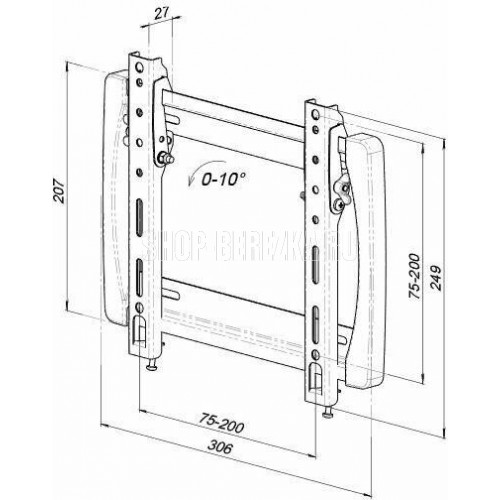 Кронштейн Техно-200 предназначен для крепления на стену LCD, LED, ЖК телевизора с диагональю экрана 23" -42" , тип кронштейна: рамочный, наклонный, угол наклона до 10°, max нагрузка 25 кг, max VESA 75х75, 100x100, 200х100, 200х200. Цвет черный.