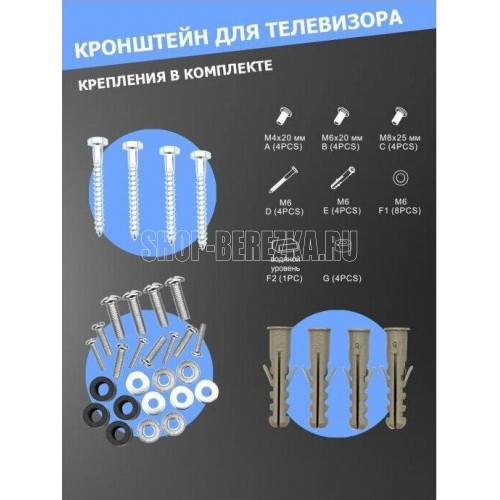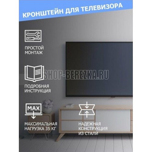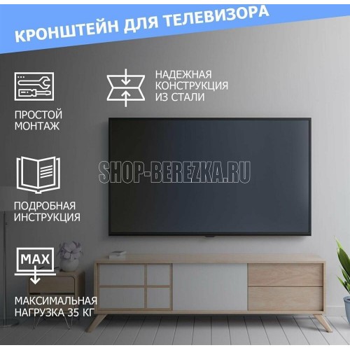 Кронштейн на стену для телевизора, диагональю: 32"-60 " дюймов, REXANT серия HOME Тип: фиксированный Назначение: для LED/LCD/PLASMA тел-в Цвет: черный Мин. диагональ: ТВ 32 дюймов Макс. диагональ: ТВ 60 дюймов Максимальный вес оборудования: 35 кг Тип монтажа: настенный Расстояние от стены до кронштейна: 23 мм Поддержка крепления стандарта VESA: 50x50/75х75 /100х100/200x200/300x300/400x400 Крепление: в комплекте.