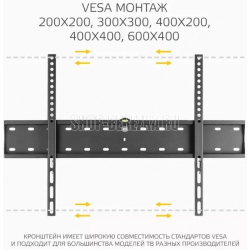 Назначение: для LCD- и LED-телевизоров. Совместимость с диагональю ТВ: 37, 40, 42, 43, 50, 55, 60, 65, 70. Тип кронштейна: фиксированный. Совместимость: поддерживает ТВ с диагональю 37-70. Максимальный вес ТВ: 35 кг. Крепление стандарта Vesa: до 600х400. Типы VESA: 200x200, 300x300, 400x200, 400x400, 600x400. Угол наклона: 0°. Материал корпуса: сталь. Минимальное расстояние от стены: 30 мм. Максимальное расстояние от стены: 30 мм. Комплектация: Кронштейн, вертикальные опоры, крепежные детали, инструкция, гарантийный талон. Цвет: черный. Размеры (ШхВхГ): 643x425x30 мм. Вес: 1.26 кг.