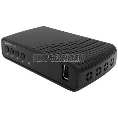 Ресивер для приема 20-ти бесплатных Телевизионных каналов от обычной антенны DVB-T2. Цифровой эфирный приемник BarTon TH-563 с поддержкой стандарта сжатия MPEG4 и режима Multiple PLP. Предназначен для приема не кодированных (открытых) каналов эфирного вещания DVB-T2. Приёмник позволяет просматривать изображения в формате высокой четкости HDTV. Медиа проигрыватель с поддержкой основных видео-, фото-, и аудиоформатов. Функция записи по расписанию, отложенного просмотра (при подключении внешнего USB носителя). Поддержка разрешения видео: 576i/720p/1080i/1080p. Формат экрана 16:9 /4:3 Расширенный телетекст и электронная ТВ программа на 7 дней. Внимание: Данный цифровой приемник не предоставляет доступ к спутниковым услугам " Триколор ТВ"
