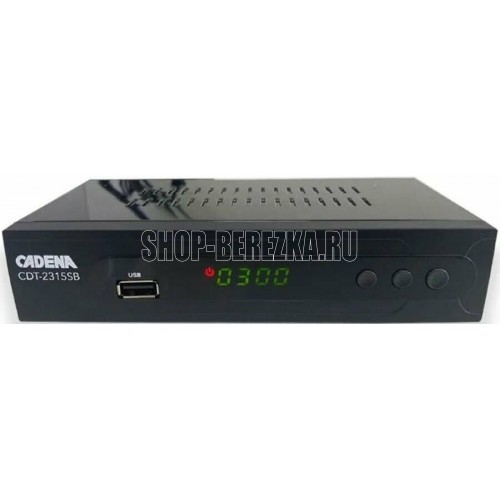СтандартыDVB-T2 Пульт ДУЕсть Комплектация Цифровой эфирный приемник Cadena CDT-2315SB – 1шт., Пульт ДУ – 1 шт., Элемент питания 1,5В AAA – 2 шт., Шнур 3RCA-3RCA - 1шт., Руководство пользователя (гарантийный талон внутри) – 1шт.. Прием DVB-T2Есть