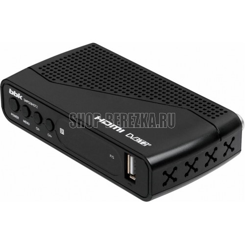 Приём DVB-T/DVB-T2 каналов в форматах MPEG-2, MPEG-4, дисплей, 4 кнопки управления на корпусе, функция медиаплеера, воспроизведение наиболее популярных форматов MKV, TS, M2TS, AVI, H.264, порт USB 2.0,антенный вход и выход (RF in, RF out), композитный видеовыход, стереофонический аудиовыход, HDMI, Timeshift, PVR, отсутствие поддержки Dolby AC3