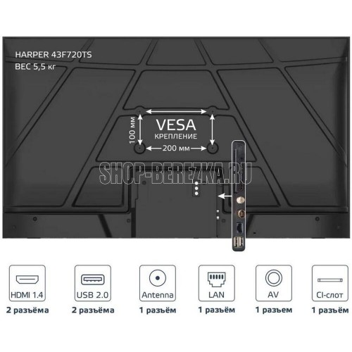 43" (109см),FULL HD 1920x1080, SMART TV (Official Android TV 9.0 Frameless 1Gb RAM + 8Gb ROM ) , цифровой тюнер DVB-T2/DVB-C ,Запись ТВ программ , Электронный Телегид, Отложенный просмотр; слот CI+ для модуля условного доступа, формат экрана: 16: 9, Авто динамическая контрастность: 90000: 1 , яркость: 250 кд/м2, угол обзора (Г/В): 178°/178°, время отклика: 8 мс, Частота обновления экрана - 50Гц, 3D цифровой фильтр, русское, английское меню, телетекст, аудио: 2х16 Вт, CA53 Quad core, 1.1GHz, Mali470 Triple core ( Оперативная память 1.5 GB, Внутреняя память 8 GB) входы: антенный ,разъемы для подключения: 2 USB, 2 HDMI, HDMI, вход CI+ (common interface), Соединение по Wi-Fi, ифровой аудио выход