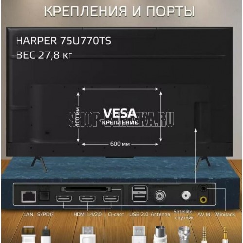 HARPER 75U770TS UHD 4K SMART TV Google Безрамочный