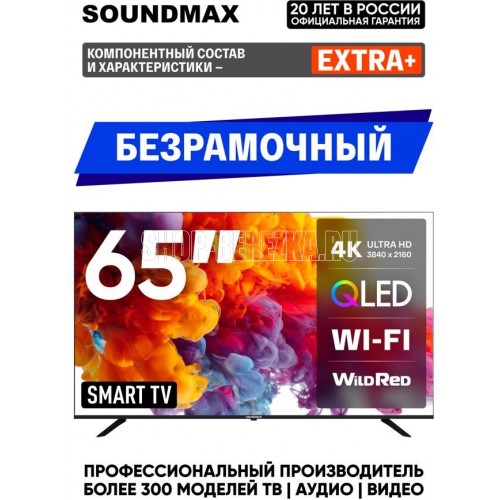 SOUNDMAX SM-QLED65T2SU UHD SMART TV Android Безрамочный