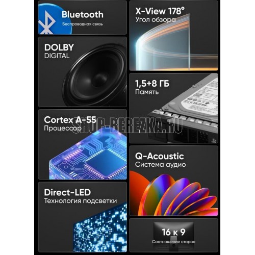 Диагональ дисплея 65" (165 см) Разрешение 3840 х 2160 Тип экрана Безрамочный Яркость (кд/м2) 285 Контраст 1300:1 Время отклика (мс) 8 Технологии изображения HDR / QLED Формат 16:9 Углы обзора (верт. х гориз.) 178 x 178 Поверхность Глянцевая Стандарт вещания DVB-T / DVB-T2 / DVB-C / DVB-S / DVB-S2 / Аналоговый Системы звука BG / DK / I Система цветности PAL / SECAM Количество каналов 199 аналоговых, 400 цифровых, 1000 спутниковых Операционная система Android 11 Процессор ARM Cortex-A53, 1.5 ГГц, 4 ядра Графический процессор ARM Mali-G52 MP2, 500 МГц, 2 ядра Оперативная память 1.5 ГБ Встроенная память 8 ГБ (часть встроенной пямяти занимает ОС) Wifi 2,4 ГГц Порт Ethernet (LAN) 10/100 Мбит HDMI 3 шт. / (2.0) HDMI функции CEC / ARC Встроенный порт USB 2 шт. / (2.0) CI порт CI+ (1.4) Выходы стерео аудиовыход (3,5мм) / оптический аудиовыход (Toslink) Входы стерео аудио + композитный видео вход (3,5 мм) Питание ~110-240 В Настенное крепление VESA 300 х 300 Мощность динамиков 2х8 Вт Цвет Черный