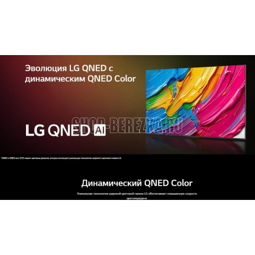 Тип процессора Интеллектуальный процессор ?7 4K Gen8.Масштабирование изображения (ИИ) 4K Super Upscaling. Яркость (ИИ) Да.Тип HDR HDR10 / HLG. Операционная система (ОС) webOS 25.Интеллектуальное распознавание голоса Да. Пульт Magic Remote Встроенный.Приложение Smartphone Remote Да (LG ThinQ). Выходная мощность 20 Вт.Система динамиков 2.0 Канал. Направленность динамиков Вниз. HDMI-вход 3 шт.: поддержка eARC, ALLMSimplink (HDMI CEC) Да. Обратный звуковой канал (HDMI) eARC (HDMI 2).USB-вход 2 шт. (v2.0) Wi-Fi Да (Wi-Fi 5).Bluetooth Да (5.1). Питание 100-240 В ~ 50/60 Гц.Потребление в режиме ожидания (Вт) < 0,5 Вт. Диджитал ТВ-прием DVB-T2/T (наземное вещаниеl), DVB-C (кабель), DVB-S2/S (спутник).Аналоговый ТВ-прием Да. Тип экрана 4K QNED.Разрешение экрана 4K Ultra HD (3840 x 2160). Тип подсветки Edge.Частота обновления 60 Гц. Цветовой диапазон Dynamic QNED Color. VESA (ШxВ) 600 x 400.
