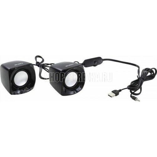 Аккустическая система, 5 Вт, диапазон частот 100-20000 Гц, размеры динамиков, мм - O 45, магнитное экранирование, напряжение питания: USB/DC 5V, материал корпуса ABS-пластик, громкий и качественный звук.