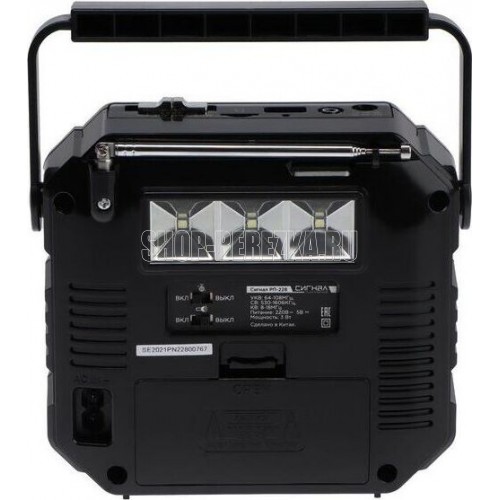 СИГНАЛ РП-228 УКВ 64-108МГц, 220V, акб 1200mA/h, USB/microSD/AUX, светодиодный фонарь/дискосвет