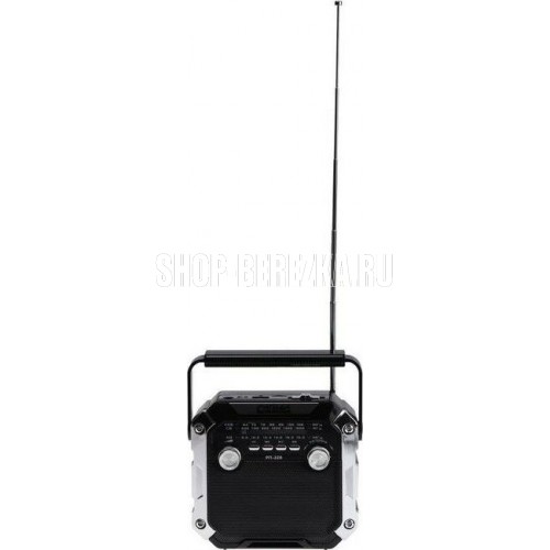 Аналоговый тюнер, УКВ/СВ/КВ диапазоны (УКВ-64-108МГц, СВ-530-1606КГц, КВ-8,0-18,0 МГц), 1 динамик (монозвучание) мощностью Ф77MM/8Ом/3W, питание 220В, аккумулятор типа 18650, емкостью 1200мА/ч, размер 150*68*130, возможность воспроизведения с USB, microSD (TF), AUX, разъем для внешнего питания 5В, 1 встроенный фонарь 0,15Вт, телескопическая антенна, функция памяти воспроизводимой записи, функция дискосвета, ручка для переноски.