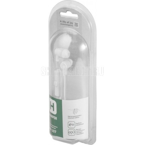 Тип устройства: проводные наушники. Тип наушников: внутриканальные. Частотный диапазон: 20 Гц - 20 кГц. Чувствительность: 105 дБ. Сопротивление: 32 Ом. Диаметр динамика: 10 мм. Встроенный микрофон: да. Переключение треков: да. Материал корпуса: пластик. Цвет: белый. Размеры (ШхВхГ): 210х80х40 мм.