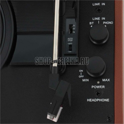 Виниловый проигрыватель, Bluetooth 4.1, номинальная потребляемая мощность - 5 Вт, скорости воспроизведения пластинок 33 1/2; 45, 78 об/мин, тонарм - поворотный прямой, разъём для вывода аудиосигнала - RCA стерео аудио (красный + белый),разъём для наушников - 3,5 мм TRS, AUX вход, разъём для подачи питания -коаксиальный.