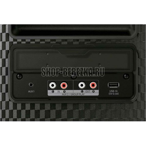 Режим переменного тока: 160 Вт Режим работы от батареи: 80 Вт. Режимы звука PARTY, STANDARD(MONO), HIPHOP, EDM, ROCK, LATIN, HOUSE, REGGAE. USB Music Playback Да. Поддержка Bluetooth Да. Bluetooth Codec SBC, AAC, aptX. Bluetooth Multi Connection Да. USB-разъём Да (x1). Включение модуля Bluetooth Да. Аудиовход Да (3.5 мм). Wired Group Play Да. Wireless Group Play Да. Потребляемая мощность в режиме ожидания < 0.5 Вт. Поддержка стандарта энергосбережения Energy Star Да. Дистанционное управление Да.