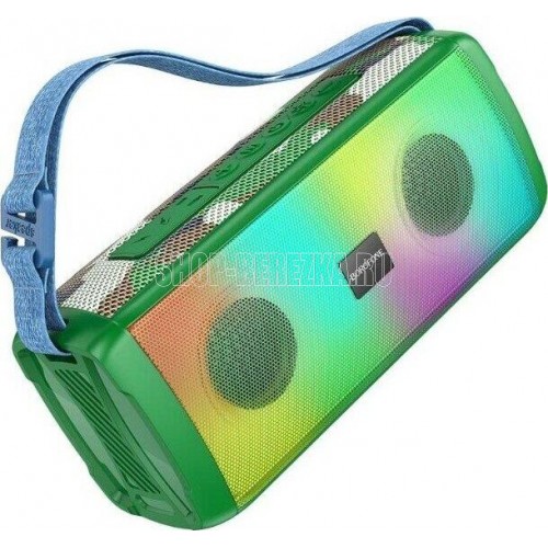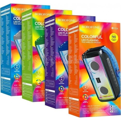 Акустика портативная, Bluetooth 5.3 5W, емкость аккумулятора в 1500 mAh даст возможность прослушивать музыку без подзарядки в течение 2,5 часов. Разноцветная подсветка и два динамика обеспечат вас мощным звуком и создадут атмосферу праздника. Поддержка Bluetooth, FM, TF-карт, U-диска, AUX, TWS.