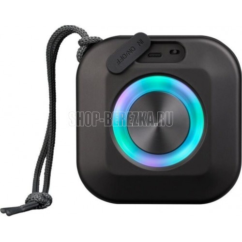 Bluetooth 5.3 - Новый стандарт увеличивает скорость передачи данных в 2 раза, радиус действия в 4 раза, а энергоемкость этого процесса существенно ниже, чем у предыдущих версий модулей беспроводной связи Светодиодная подсветка Разъем TYPE C - Штекер можно подключать в любом положении, не опасаясь повредить контакт, что гарантирует значительно более долгий срок службы разъема Компактный размер - Отлично подходит для путешествий Встроенный пассивный излучатель на задней панели - Улучшает качество воспроизведения, усиливает басы и глубину звука Удобный подвес для переноски