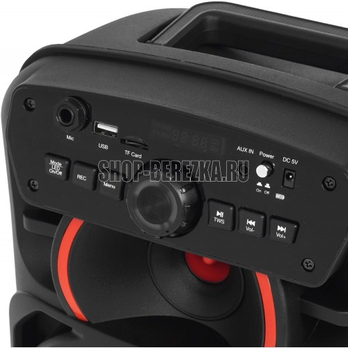 Мощность (RMS) 8 Вт. Емкость батареи 3.7 В, 1800 мАч. Тип аккумулятора Li-ion. Время зарядки До 2 часов. Время автономной работы До 1 часа. Версия Bluetooth 5.0+BR+EDR+BLE. Дальность действия 10 м. TWS Нет. Эквалайзер Да. Подсветка Да. FM-радио Да. Поддержка HANDS-FREE Нет. Функция Powerbank Нет. Влагозащита Нет. Максимальный размер USB-входа для флэш-памяти 128 ГБ. Разъемы USB, AUX, Micro SD. Ручка для переноски Да. Пульт ДУ Да. Беспроводной микрофон Нет. Габариты (ШxВxГ) 214 х 360 х 230 мм. Комплектация Портативная акустика, зарядное устройство, пульт ДУ, руководство по эксплуатации, гарантийный талон. Вес нетто 7.95 кг.