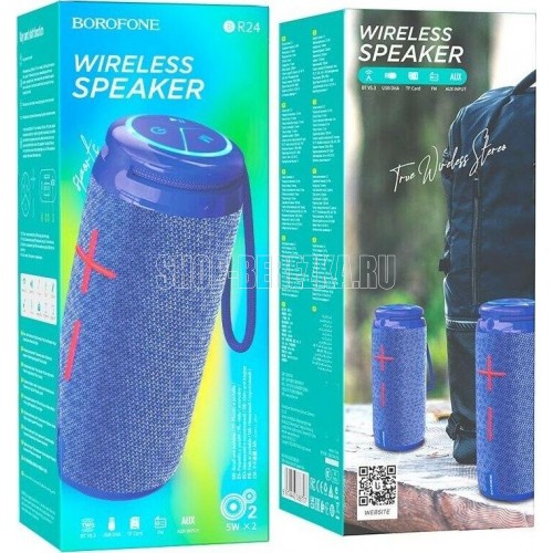 Портативная колонка, BT v5.3, батарея 1200mAh для 2 часов использования, поддержка BT, FM, TF, USB, AUX, TWS режимов воспроизведения.