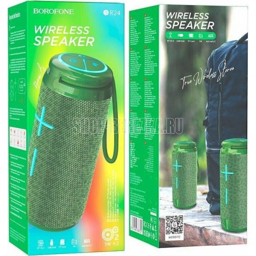 Портативная колонка, BT v5.3, батарея 1200mAh для 2 часов использования, поддержка BT, FM, TF, USB, AUX, TWS режимов воспроизведения.