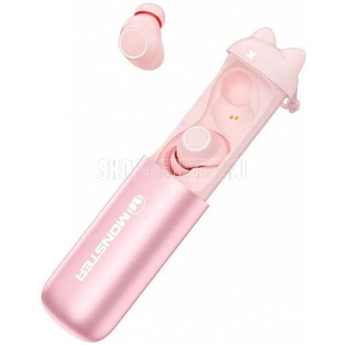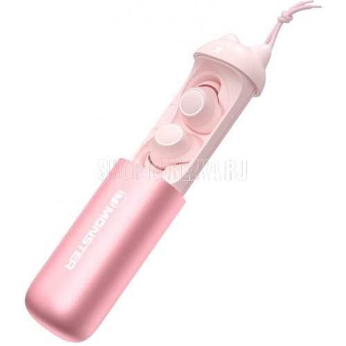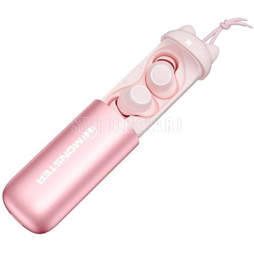Наушники беспроводные TWS MONSTER Melody (MH22116), розовые. Необычный дизайн кейса, шнурок в комплекте, эргономичные наушники, великолепный фирменный звук, в комплекте 3 вставки и 3 накладки S/M/L.bluetooth v 5.3/chipset n/a/battery Earphones: 40mAh, Charging case 280mAh/water resistance IPX5/play time (50%) volume 6,5h