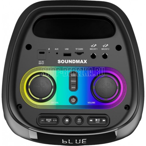 Мощность 120 Вт Максимальная выходная мощность 200 Вт Частотный диапазон 20 Гц - 20 кГц Количество и размеры динамиков 2 х 6.5" + 1.5" Эквалайзер есть Поддерживаемые аудиоформаты MP3, WAV Bluetooth 5.1 Радио Диапазон FM 87.5 - 108 Аудиовход есть Вход для микрофона есть Вход для гитары есть Разъём USB есть Слот для microSD карты есть Громкая связь/Hands-free Нет Голосовой помощник Нет Функция True Wireless Stereo есть Дисплей есть Отключение подсветки есть LED подсветка есть Аккумуляторная батарея (тип, ёмкость, напряжение) Li-ion 8800 мАч, 7.4 В Время работы от аккумулятора До 20 часов Тип разъёма питания USB Type C Комплектация Кабель USB, пульт дистанционного управления, руководство по эксплуатации Цвет Чёрный Габариты устройства (Ш х В х Г) 580 х 260 х 260 мм Вес 4.58 кг