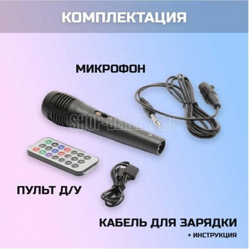 Портативная акустика аудиосистема, Bluetooth 5.0, емкость аккумулятора 1800 мАч, время автономной работы 3 ч, динамик - 8 дюймов, мощность 10 Вт, время зарядки аккумулятора - 150 мин, входные интерфейсы 3.5 мм, USB, поддержка Bluetooth, FM, USB, TF-карты, AUX, TWS и др.