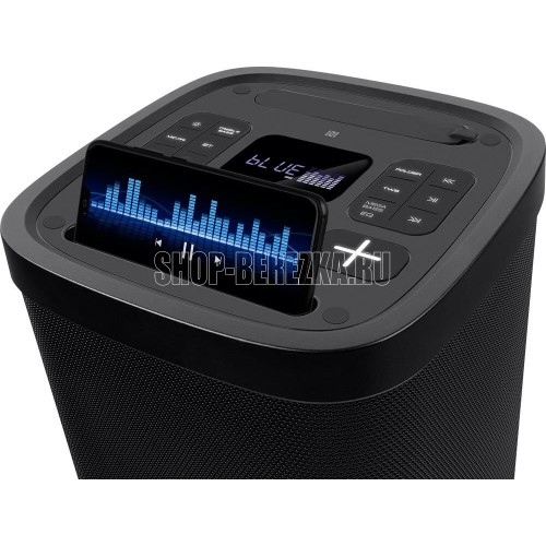 Выходная мощность 160 Вт Передача сигнала по Bluetooth Защита от воды (IPx4) Динамическая отключаемая RGB подсветка Беспроводное подключение двух колонок к одному источнику звука (TWS) Два микрофонных входа для караоке Регулировка уровня эха караоке микрофона FM-радио* Быстрое подключение по Bluetooth с помощью NFC** LED дисплей Воспроизведение музыки с USB flash и microSD карт памяти Стробоскоп Ручка для переноски Время работы от батареи до 22 часов Встроенная подставка для смартфона Вход AUX для подключения источника звука Функция эквалайзера Пульт ДУ Функция усиления баса