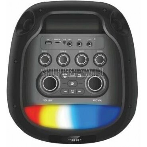 Режимы воспроизведения: - Bluetooth - FM - Внешний накопитель - Aux Мощность: - RMS 130 Ватт - PMPO 1300 Ватт Питание: - 220V - Встроенный аккумулятор 12В 12А (до 5 часов работы) Разъемы: - USB - MicroSD - AUX - Jack 6.3 мм (микрофон-гитара) 2 шт. Комплектация: - Колонка - Кабель питания - Беспроводной микрофон-2 шт - Пульт ДУ - Инструкция - Кабель AUX 3.5mm Размеры упаковки: Ширина - 43 см Высота - 94.5 см Глубина - 40 см Вес брутто: 23 кг Дополнительно: LED подсветка Регулировка громкости микрофона Дисплей Приоритет микрофона Регулировка эхо микрофона Удобная ручка для переноски Встроенный эквалайзер