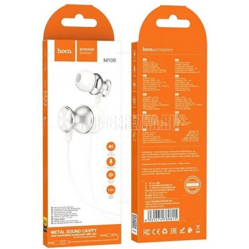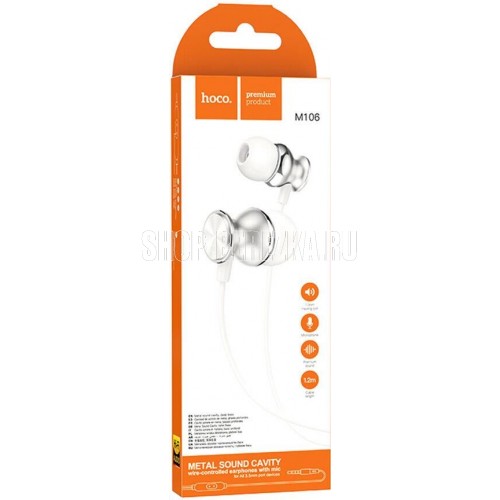 Стильные наушники Hoco M106 с микрофоном и кнопкой управления воспроизведением. Длина кабеля - 120 см. Оболочка кабеля - TPE, корпус наушников пластиковый. Наушники представлены в серебристом и сером цветах.