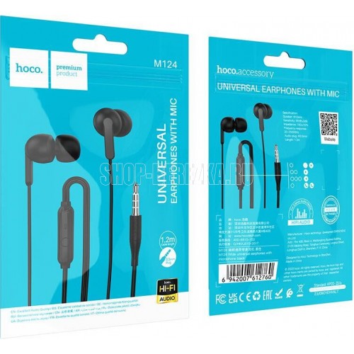 Наушники Hoco M124 это вакуумные наушники с AUX разъемом, предназначенные для комфортного прослушивания музыки и общения. Они оснащены встроенным микрофоном, что позволяет использовать их для звонков, однако не имеют регулятора громкости. Длина кабеля составляет 1.2 метра, что обеспечивает удобство использования в различных ситуациях