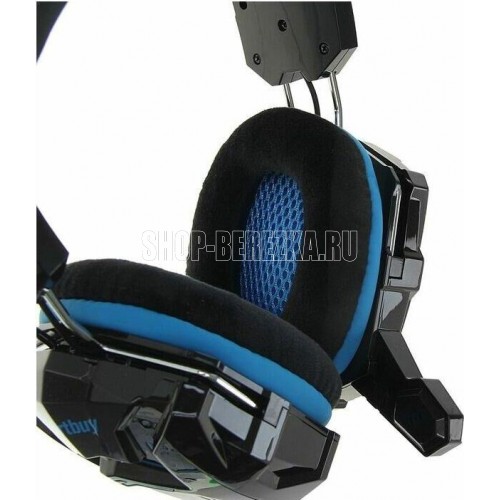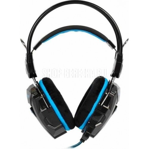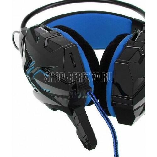Полноразмерная проводная игровая гарнитура с подстветкой. Велюровые амбушюры и мягкое оголовье обеспечат комфорт во время самых напряженных баталий. Дублирующие оголовье рейки обеспечат лучшее прилегание, которое позволит сосредоточиться только на игре. А регулируемые по высоте металлические направляющие обеспечат прочность изделия. Диаметр динамиков: 40 мм. Частотный диапазон наушников: 18 Гц — 20 кГц. Чувствительность наушников - 103 дБ. Чувствительность микрофона - 58 дБ. Крепление микрофона: на левой чашке наушников. Управление: уровень громкости / отключение звука. Длина кабеля: 2.2 м. Объемный звук. Усиленная звукоизоляция. Мягкое оголовье идеально подходит для долгой игры. Сверхчувствительный микрофон. Прочный кабель. LED подсветка. Интерфейс соединения - 2 х 3,5мм + USB (для подсветки).
