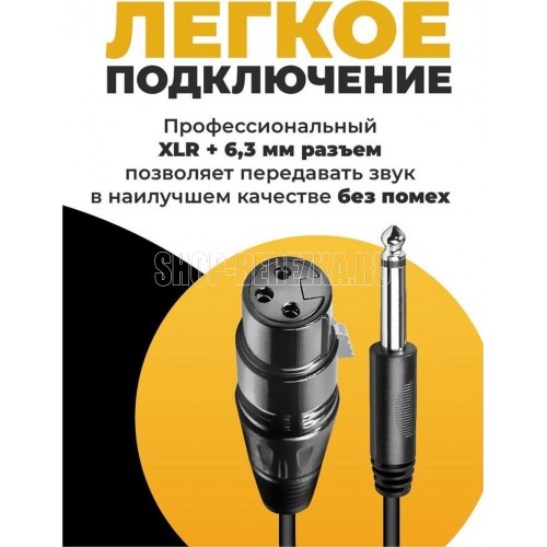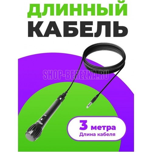 Микрофон проводной, частотный диапазон: 60 - 15 000 Гц, сопротивление: 600 Ом, чувствительность: 54 дБ ± 3 дБ, длина провода: 3 м