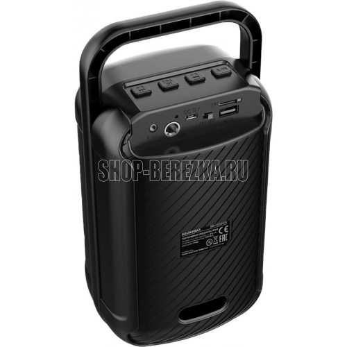 Выходная мощность, 20 Вт Частотный диапазон 100 Гц - 18 кГц Количество и размер динамиков 2 х 3" Эквалайзер Нет Поддерживаемые аудиоформаты MP3, WAV Версия Bluetooth 5.1 Диапазон FM 87.5 - 108 МГц Аудиовход AUX Да Вход для микрофонаДа Разъём USB Да Слот для SD карт Да Hands-free Нет Функция True wireless stereo Да Голосовой помощник Нет Дисплей Нет Наличие подсветки Да Аккумуляторная батарея (тип, ёмкость) Литий-ионная, 1200 мАч Время работы от аккумулятораДо 8 часов Параметры адаптера 5 В 2 А Тип разъёма питания MicroUSB Комплектация Кабель USB, инструкция Цвет Чёрный Габариты устройства Ш х В х Г, мм 239 х 120 х 102 мм