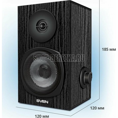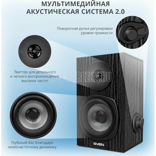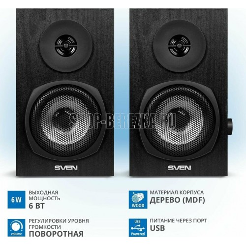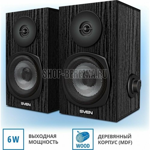 Акустическая система мултимедийная, выходная мощность 6Вт (2х3Вт), частотный диапазон 80-20000 Гц, ВЧ-излучатель для детального воспроизведения высоких частот, регулировка уровня громкости, питание через USB-порт ПК, ноутбука или адаптер 5V DC, материал корпуса колонок – дерево (MDF)